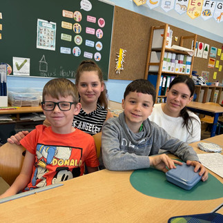 Die 1a Klasse bekam bereits zum zweiten Mal Besuch von Schülerinnen und Schülern der Mittelschule. Die Großen lasen den Kleinen vor, malten und spielten mit ihnen.