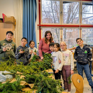 Wie jedes Jahr binden die Kinder der VS20 zum Beginn der Adventzeit gemeinsam einen Adventkranz. Die dafür benötigten Tannenzweige werden von engagierten Eltern gespendet. Mit viel Freude gestalten die Schüler*innen anschließend ihren Kranz, der nun im Stiegenhaus seinen Platz gefunden hat und beim traditionellen Stiegensingen feierlich entzündet wird.